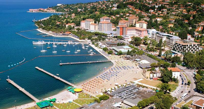 Le 5 km od letališča Vas čaka Portorož, mesto mnogim poznano pod imenom “pristanišče vrtnic”. Pohvali se lahko z blago mediteransko klimo in bogato zdraviliško tradicijo, po kateri je Portorož znan že od 13. stoletja.