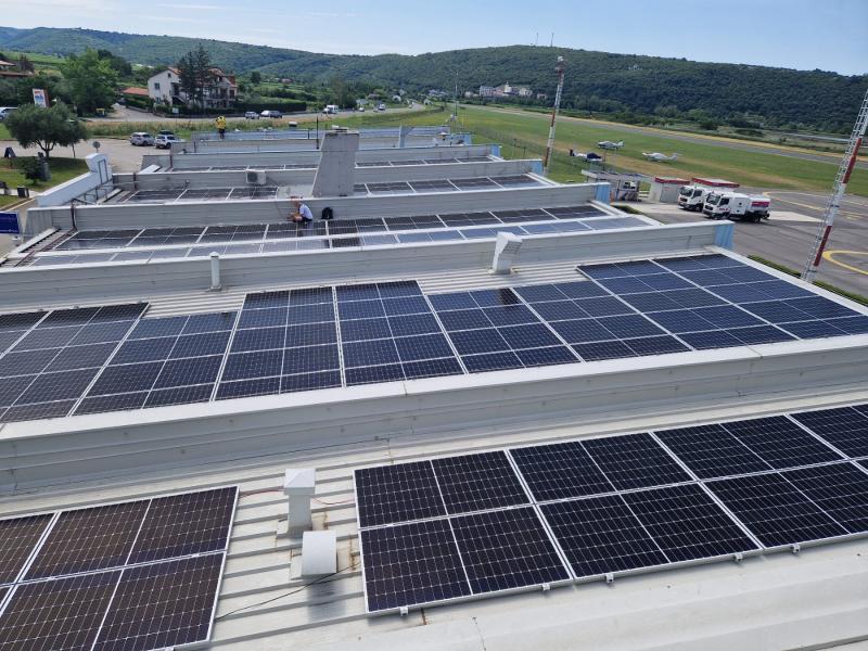 Postavljena je na na strehi glavne zgradbe aerodroma in pa hangarjev. Na strehah je skupno postavljenih 670 modulov. Nazivna priključna moč elektrarne je 220 kW, z inštalirano nazivno močjo fotonapetostnih modulov 274 kWp. S pridobljeno električno energijo bomo zagotavljali polnjenje operativnih vozil in opreme, višek elektrike pa prodali v omrežje.